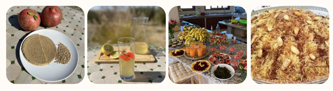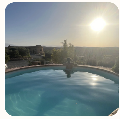 - 14h-16h : chaque après-midi, temps libre et nous vous proposerons ateliers cuisine, balades, excursions pour découvrir la région. Bien sûr vous pouvez utiliser ce temps pour vous relaxer : temps de repos, hammams ou piscine, si vous préférez