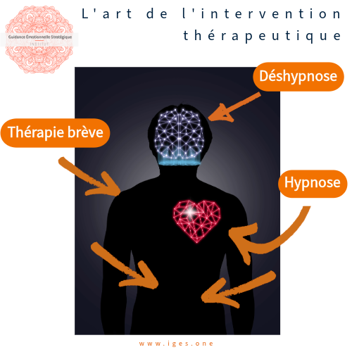 Synthèse thérapeutique approfondie pour la libération mentale et émotionnelle, la Guidance Émotionnelle Stratégique allie de manière puissante le plus utile de l’Hypnose & la traumatologie, de la Thérapie Brève et de la Déshypnose & la thérapie non duelle pour une efficacité renforcée.