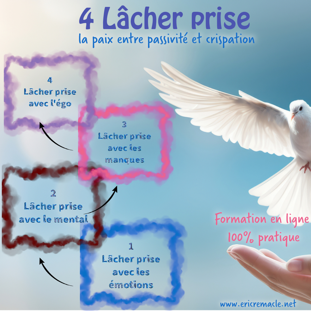 Une formation complète 100% pratique pour passer rapidement de la souffrance au lâcher prise. Il est possible de subir moins de stress, passer moins dans le passé et le futur pour vivre mieux au présent. La voie du juste milieu entre passivité et crispation mentale. 129€ au lieu de 169,00€ pendant encore quelques jours !