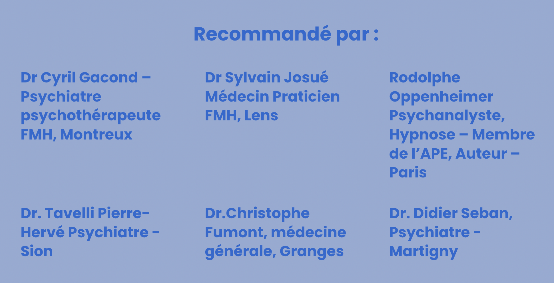 Mon approche globale est appréciée er recommandée par des psychiatres qui m'envoient leurs patients.