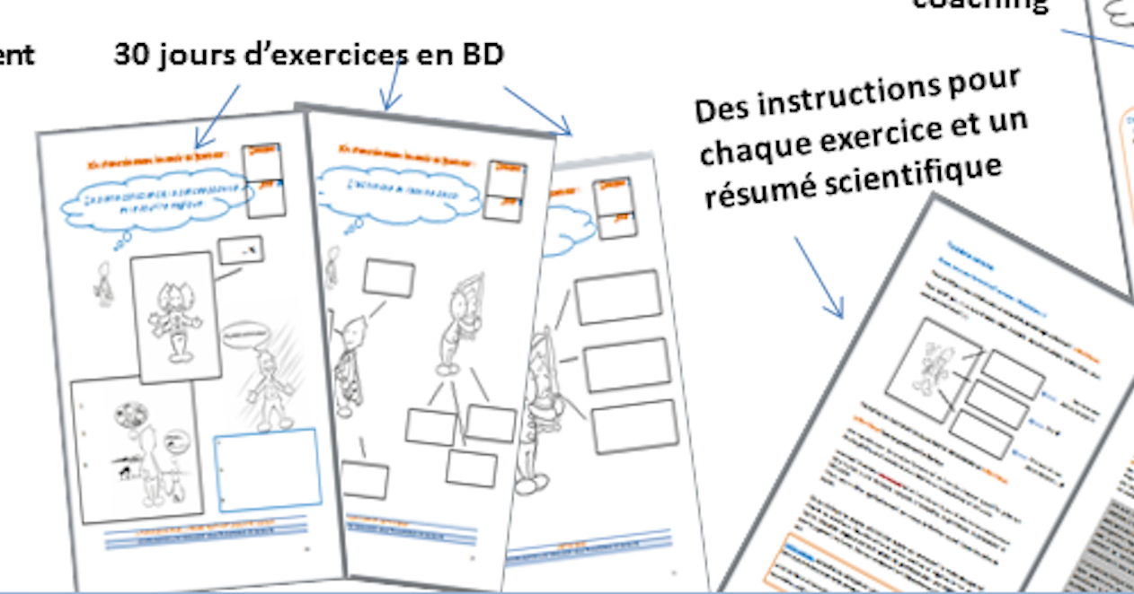 Chaque jour pendant trente jours, un véritable entraînement de votre cerveau, amusant avec des bulles de bandes dessinées à compléter !