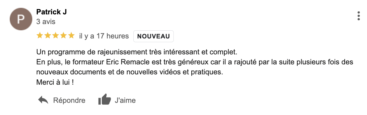 Ce fut un succès et pour cette raison, je la partage maintenant au travers de cette formation en ligne où je présente ces 16 stratégies pour bien commencer à rajeunir dans le temps.